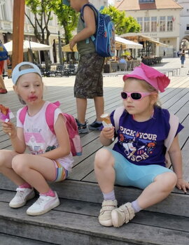 Deti z našej materskej školy si užili krásnu a zaujímavú exkurziu. Pre blízku vzdialenosť sme sa rozhodli spoznať naše krajské mesto Trenčín. Prekvapením pre deti bola jazda turistickým vláčikom Matúš Čák, ktorý ich previezol centrom mesta až k areálu Trenčianskeho hradu. V budove kasárne sme navštívili výstavu Retro radosti- hračky a kočíky minulosti, v rámci ktorej boli vystavené hračky vyrábané v minulosti s láskou a starostlivosťou. Deťom sa podarilo zvládnuť výstup na hradnú Matúšovú vežu, z ktorej je nádherný výhľad na mesto Trenčín, rieku Váh a širokú krajinu Trenčianskej kotliny. Po odchode z hradu sme si oddýchli, ale aj sa zabavili v lesoparku Brezina. Na záver exkurzie sme absolvovali krátku prechádzku mestom. Odmenou za snahu bola sladká zmrzlina, ktorá všetkým deťom naozaj chutila. Ako odpoveď na otázku: "Aký bol výlet?" zaznelo: "Bolo nám super!"